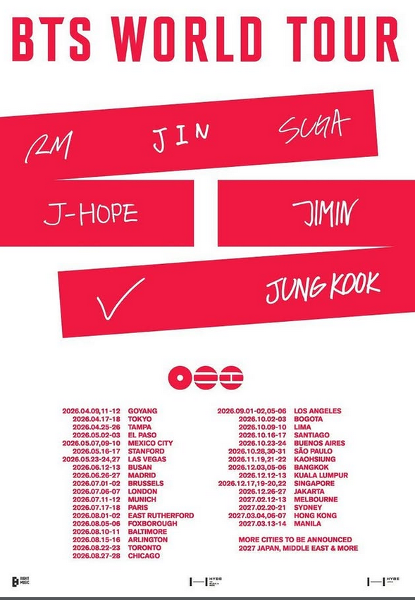 BTS have officially announced their long-awaited 2026 World Tour, marking their full return to the global stage after years of