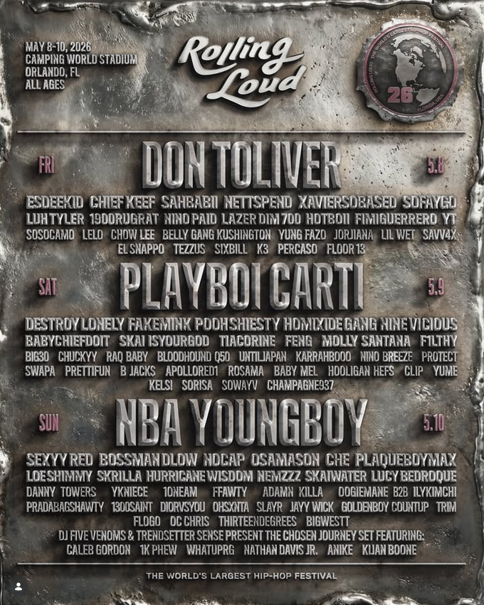 Image: Rolling Loud (Official Instagram Account) Rolling Loud has officially revealed its 2026 lineup, and the world’s biggest hip-hop festival